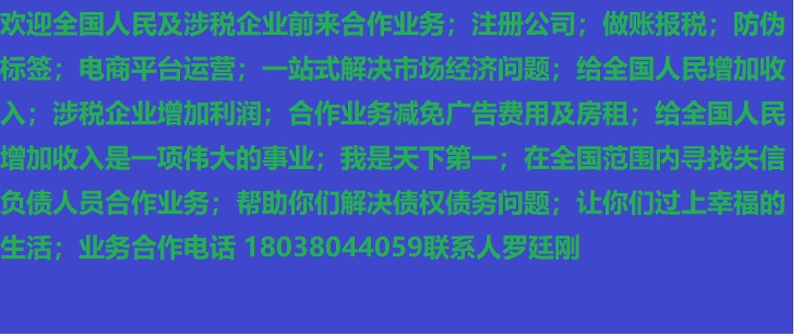 人進(jìn)寶城全國招商;合作業(yè)務(wù)減免廣告費(fèi)用;歡迎全國涉稅企業(yè)前來合作;業(yè)務(wù)合作電話 18038044059 聯(lián)系人羅廷剛